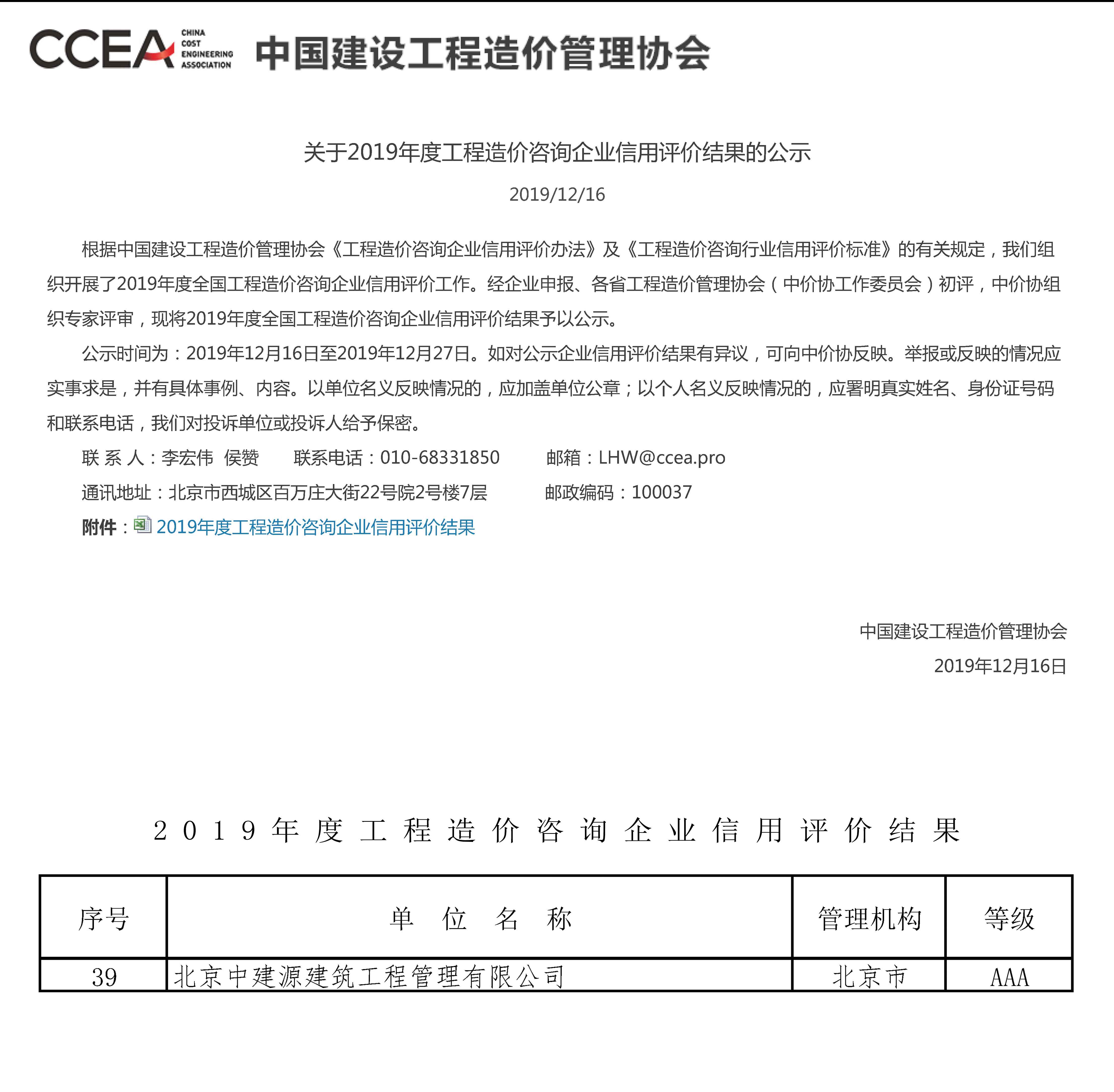中建源公司此次通過工程造價咨詢企業信用“AAA”評級,標志著公司在業務水平、管理水平、服務水平等方面均獲得協會的一致認可,能夠為客戶提供更成熟的行業方案和更高質量的服務。