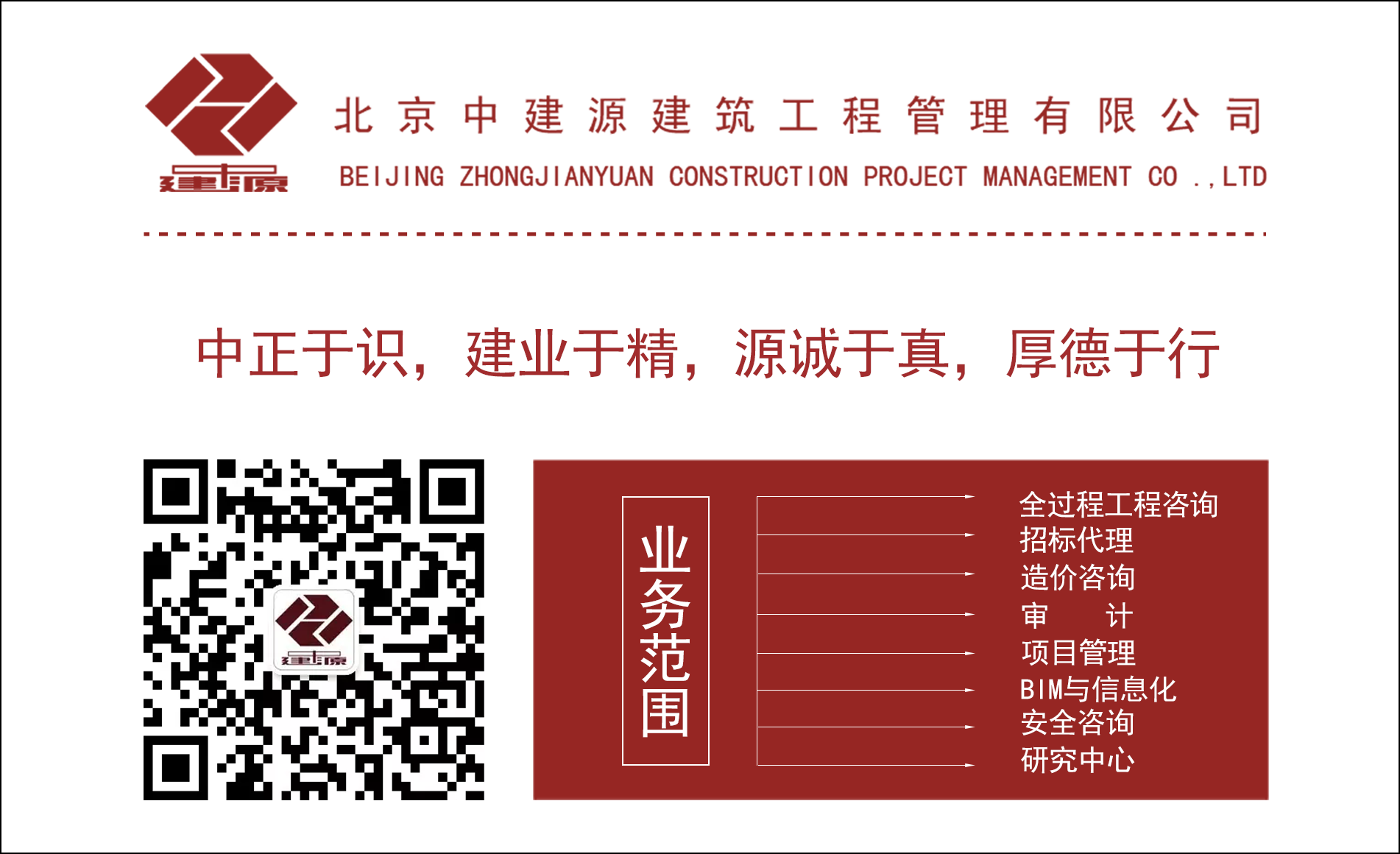 北京中建源建筑工程管理有限公司成立于2000年06月06日,是伴隨著工程建設全流程服務專業化而發展起來的。科學嚴謹的文件體系、完善詳盡的信息系統、簡潔高效的協同工作流程,是公司市場競爭力的核心,同時也積累了他人難以企及的豐富經驗,而經驗無疑是咨詢服務企業最保貴的資源。